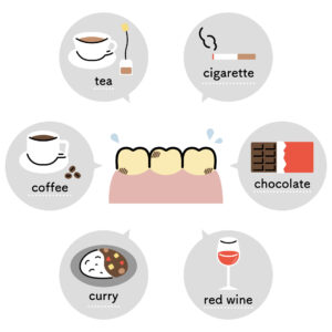 ポリフェノールなどの成分が歯のエナメル質覆っているペリクルに付着することで、着色汚れが生じてしまうのです。